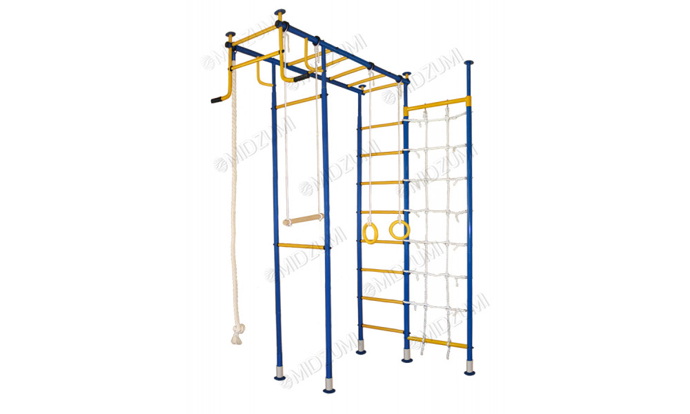 Торговый Дом Midzumi представляет новинку Детский спортивный комплекс Midzumi Tati. Этот спортивный комплекс показывает разнообразие модельного ряда продукции Midzumi. Прочная металлическая конструкция позволяет выдерживать до 100 кг. Крепление враспор прекрасно подойдет тем, кто не хочет портить обои и сверлить стены. Крепление враспор между полом и потолком надежно ни чуть не меньше крепления к стене, к тому же такой комплекс при необходимости можно легко перенести на другое место. При выборе комплекса обратите внимание на материал Вашего потолка. Если он выполнен из хрупких материалов, таких как гипсокартон (навесные потолки) и вагонка, то для Вас лучше подойдут пристенные модели. Металлическая шведская стенка имеет турник с большим выносом от самой стенки. Благодаря такому дизайну появляется возможность добавить в комплекс навесное оборудование такое как канат,трапеция и кольца. Дополнительно к шведской стенке крепится канатный лаз. Канатная сетка шириной в 60 см. расширяет место для увлекательных приключений. Ее можно установить справа или слева от шведской стенки. Дети очень увлекаются игрой на шведской стенке, особенно интересно когда есть возможность перепрыгивать с одного снаряда на другой. В ДСК Midzumi Tati есть все необходимое для выполнения различных общеразвивающих и укрепляющих упражнений в домашних условиях. Tati можно использовать как для развлечений, так и для занятий спортом. Торговый Дом Midzumi включает в свои комплексы все Ваши интересы. Среди богатого разнообразия детских спортивных комплексов, каждый найдет то, что интересно именно ему.